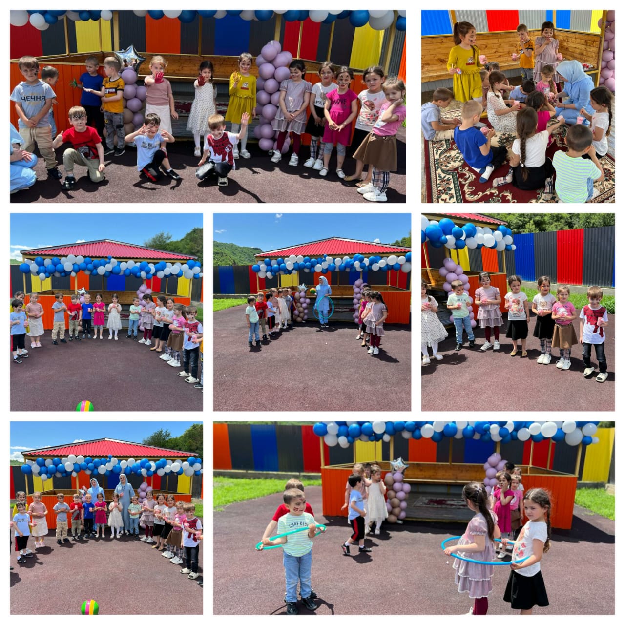 01.06.2023С целью формировать у детей понятия “Право на отдых”, “Право на образование”, дать детям дошкольного возраста элементарные знания и представления о международном празднике “Дне защиты детей”, воспитания желания проявлять творческую инициативу, предоставив для этого равные возможности всем детям в детском саду было проведено праздничное мероприятие, посвященное Дню защиты детей. Мероприятие было проведено на улице. Праздник был очень веселым, радостным для детей. Дети пели веселились, играли, плясали, надували шары, делали хоровод, рисовали пальчиками с гуашью. В конце праздника детям раздали коробки с цветными мелками, с помощью которых дети рисовали различные рисунки на асфальте. Дети нарисовали небо, облака, солнышко, реки, поля, цветочки, море, своих друзей. Рисунки получились замечательными, яркими, красочными.
